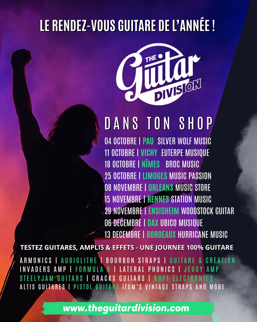 The Guitar Division takes to the road again in 2025 for a new edition of the Guitar Division Tour, the tour that unites the world of guitars, lutherie, amps, effects and accessories around a single concept: a day 100% dedicated to guitarists and bassists, directly in the heart of partner stores all over France.