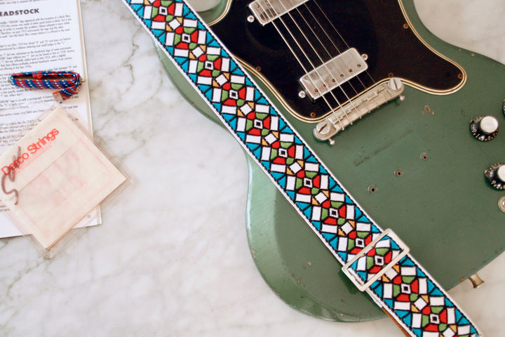There are guitar accessories that do much more than hold an instrument. They tell a story, transport an era, and convey a unique musical spirit. Among them, the vintage Woodstock-style guitar strap occupies a special place. Its retro aesthetic, 60s-70s-inspired colors, and handcrafted comfort have made it one of the most sought-after items among folk, psychedelic rock and vintage beauty enthusiasts.