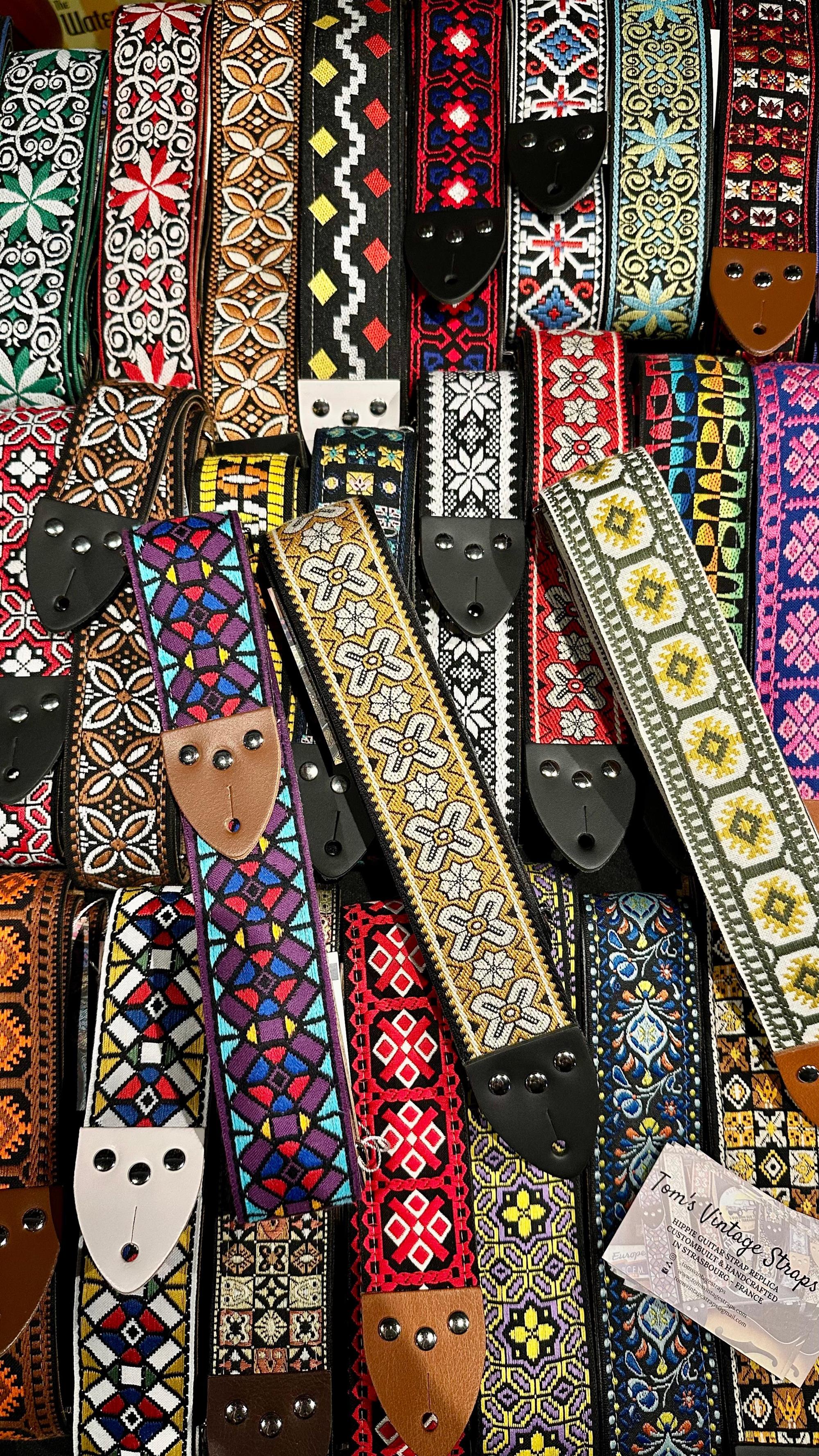 A vintage Woodstock guitar strap is inspired by the straps of the 60s and 70s: colorful woven fabrics, hippie motifs, retro finishes and handcrafted materials. Tom Vintage Strap's models capture this spirit while adding modern quality.