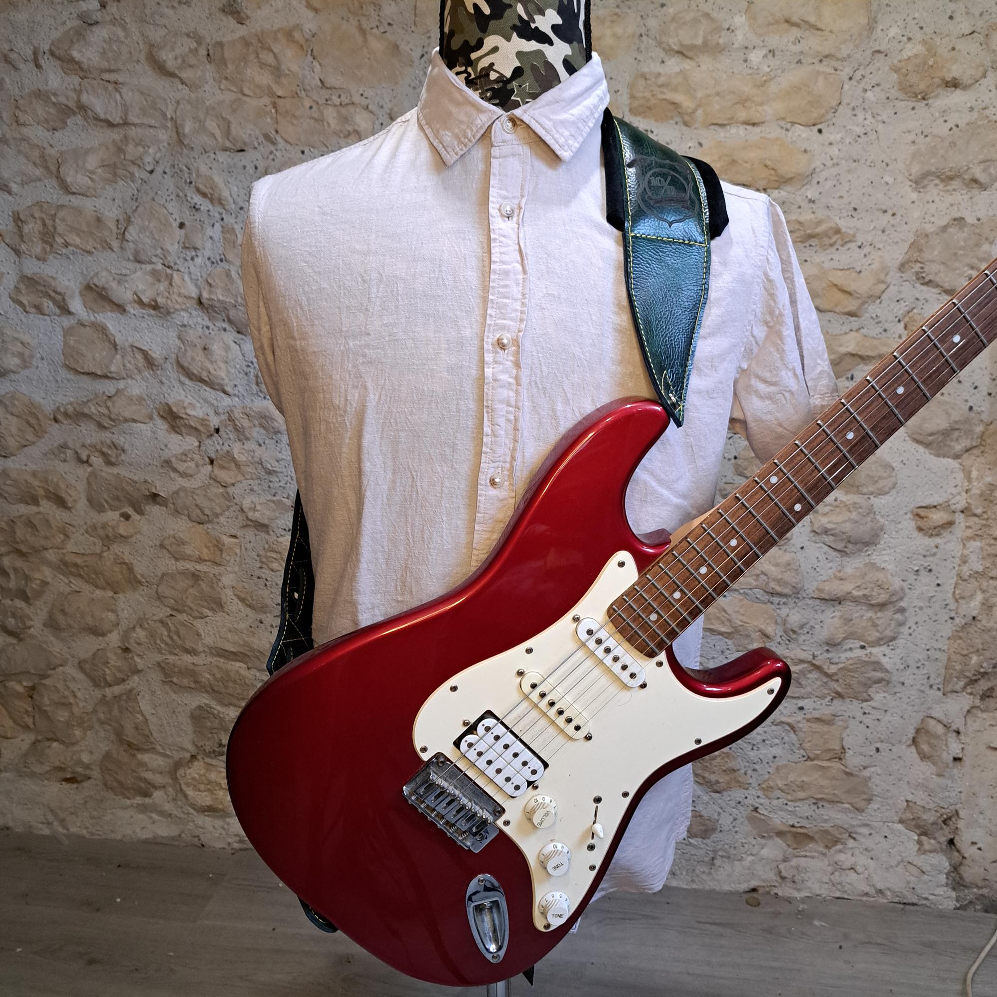 - Sangle pour guitare/basse en cuir vert, rembourrée, doublée velours noir.