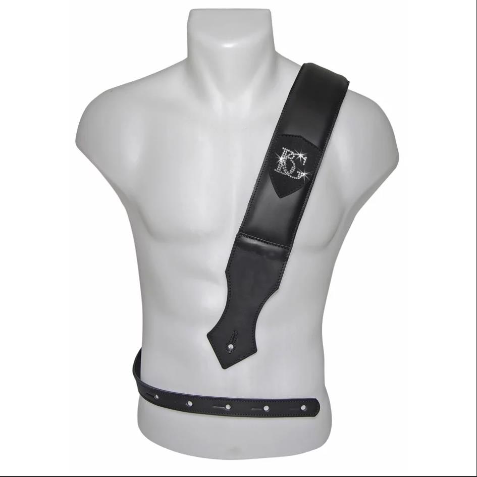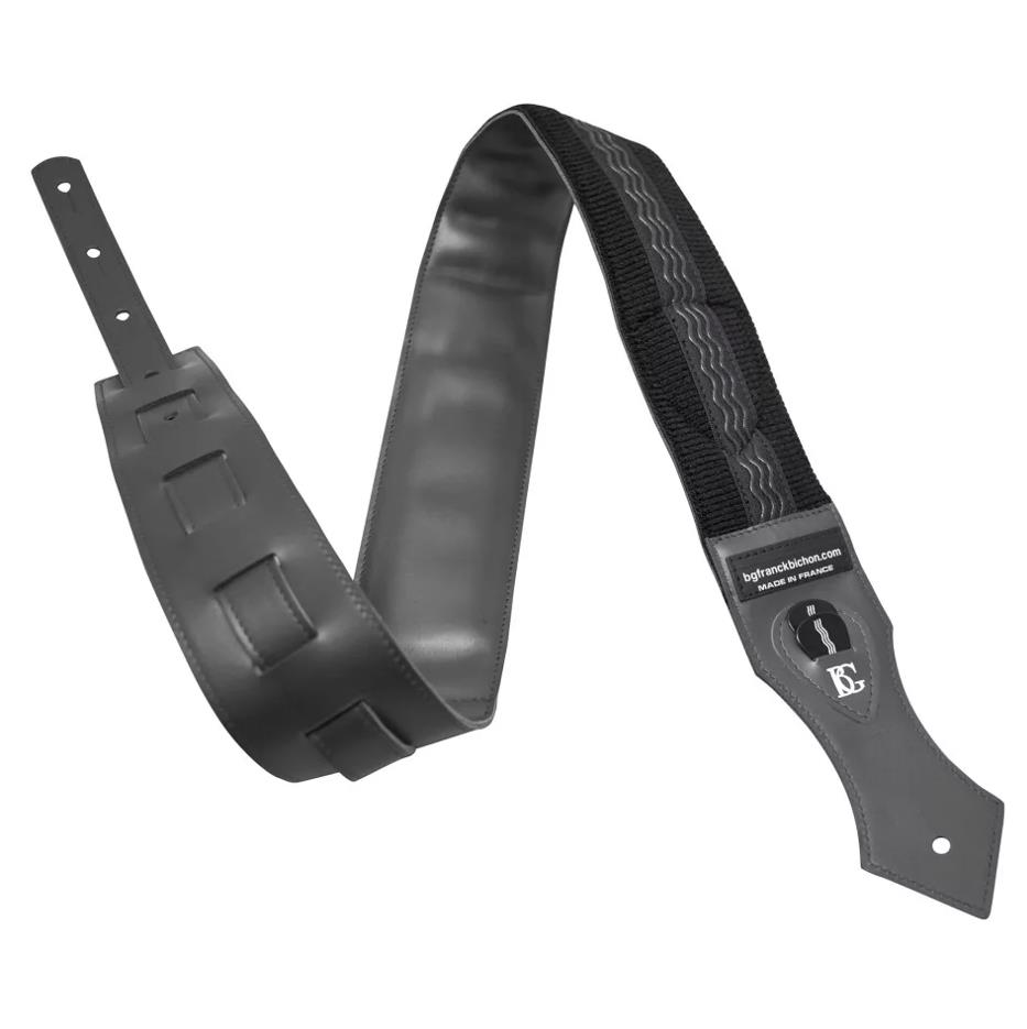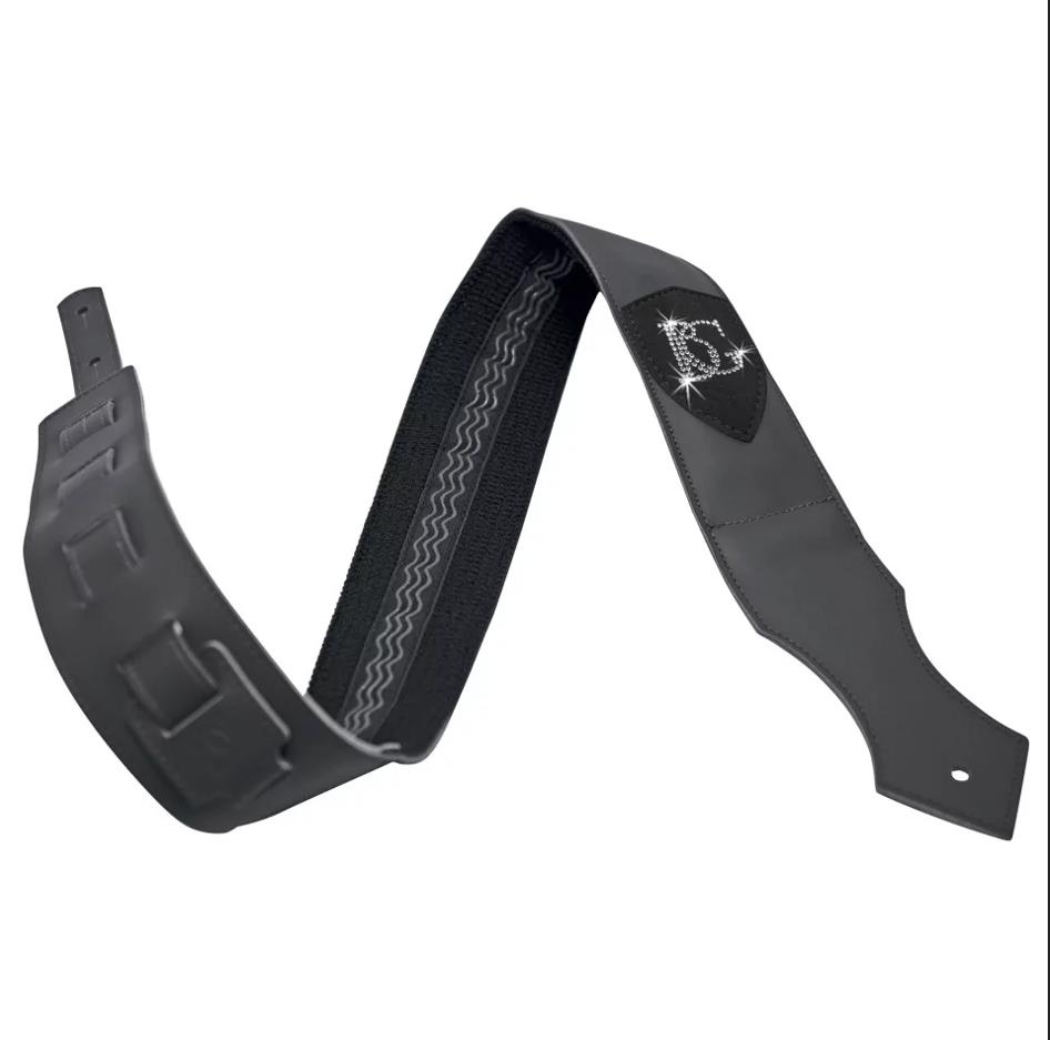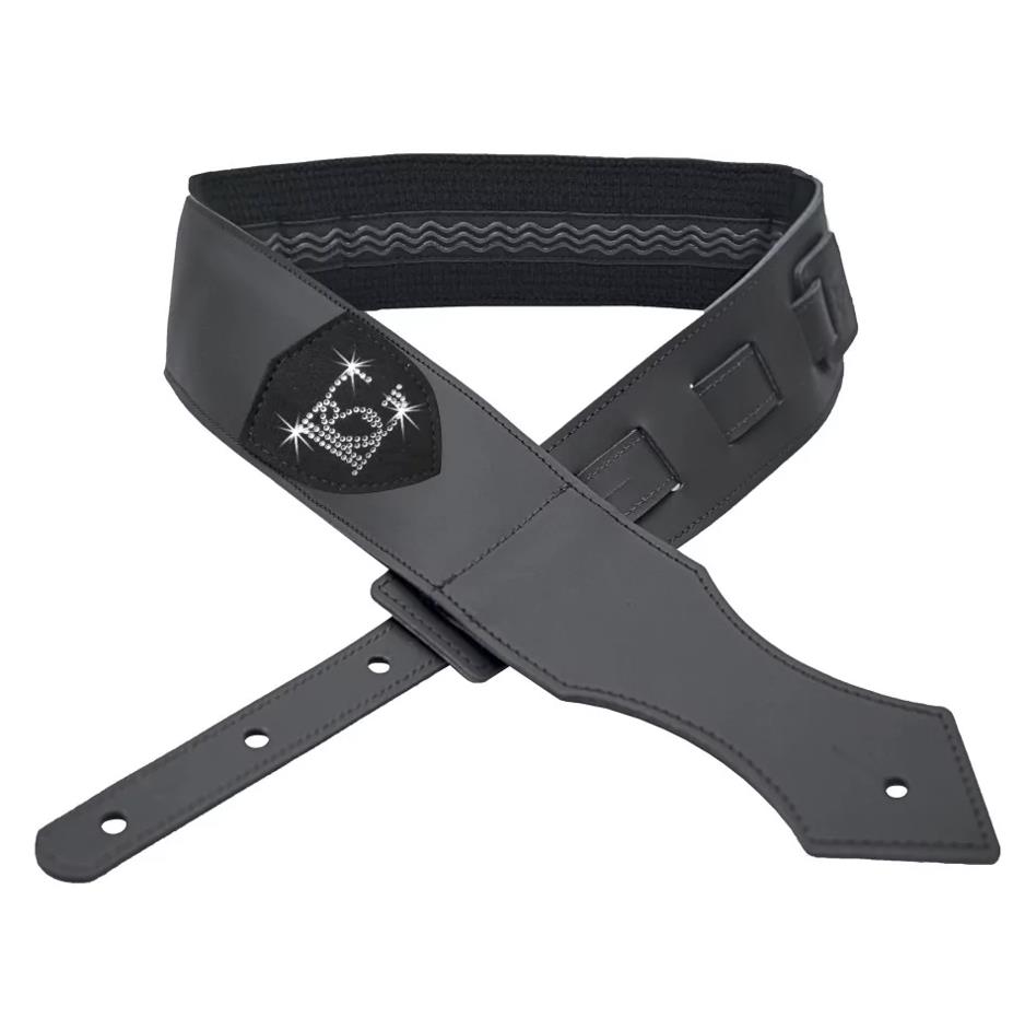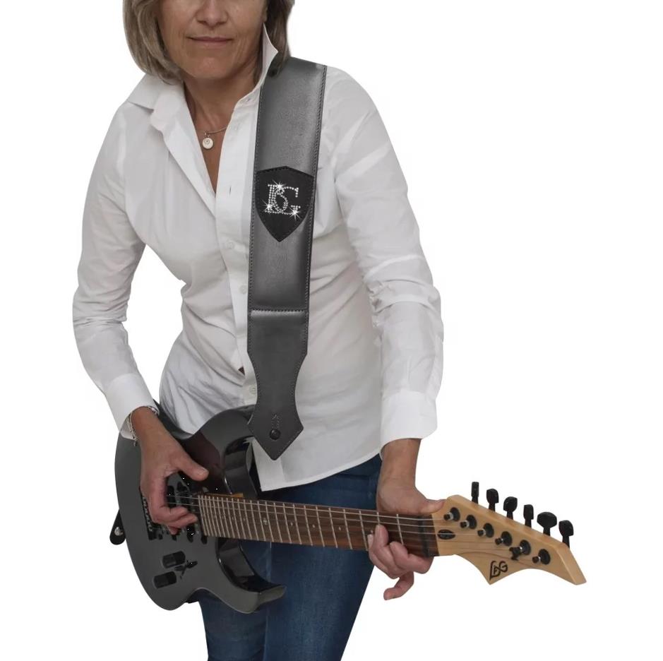 CUIR NOIR - Sangle Logo BG Glam - Doublé de laine polaire + éponge coton + bande Antiglisse - Pour guitare électrique / basse.